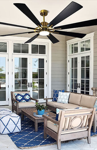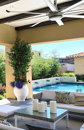 Professional installation of weather-rated ceiling fans for alfresco areas, patios, and outdoor living spaces in the Rhodes climate.